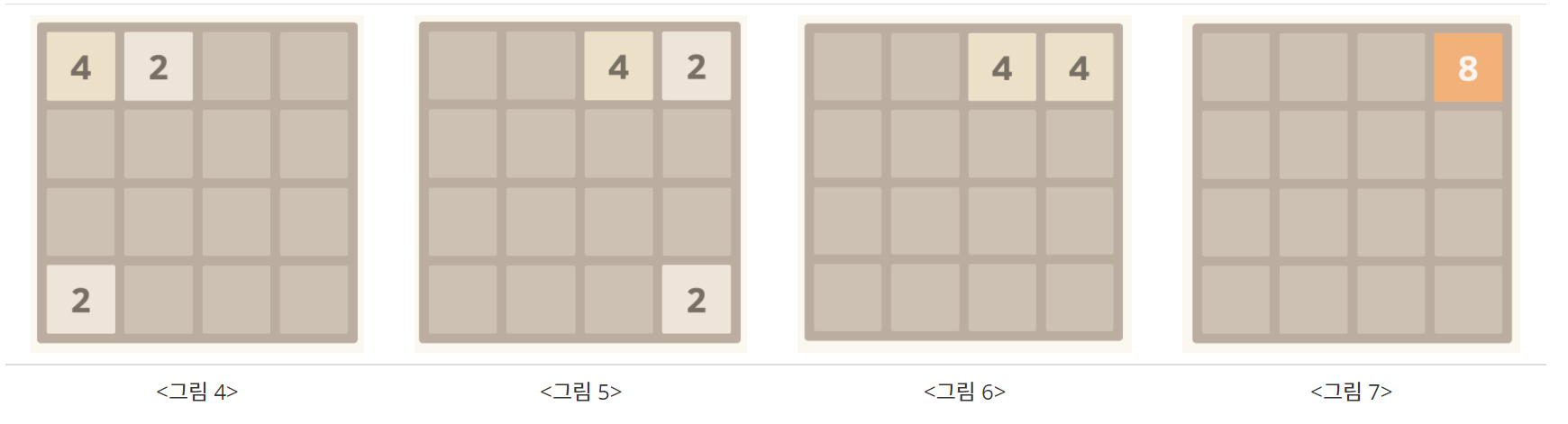 <๊ทธ๋ฆผ 8>์ ์ํ์์ ์ผ์ชฝ์ผ๋ก ๋ธ๋ก์ ์ฎ๊ธฐ๋ฉด ์ด๋ป๊ฒ ๋ ๊น? 2๊ฐ ์ถฉ๋ํ๊ธฐ ๋๋ฌธ์, 4๋ก ํฉ์ณ์ง๊ฒ ๋๊ณ <๊ทธ๋ฆผ 9>์ ์ํ๊ฐ ๋๋ค.